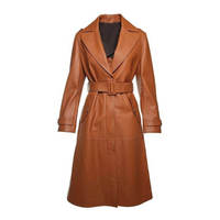เสื้อเทรนช์โค้ทสตรีสไตล์วินเทจเสื้อโค้ทหนังยาวแขนยาว