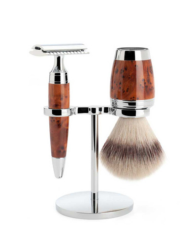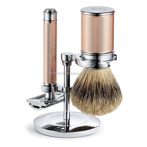 Salon traditionnel ensemble de rasage manuel 3 pièces pour hommes rasoir de sécurité à double tranchant avec brosse à cheveux synthétiques kit de toilettage de barbe